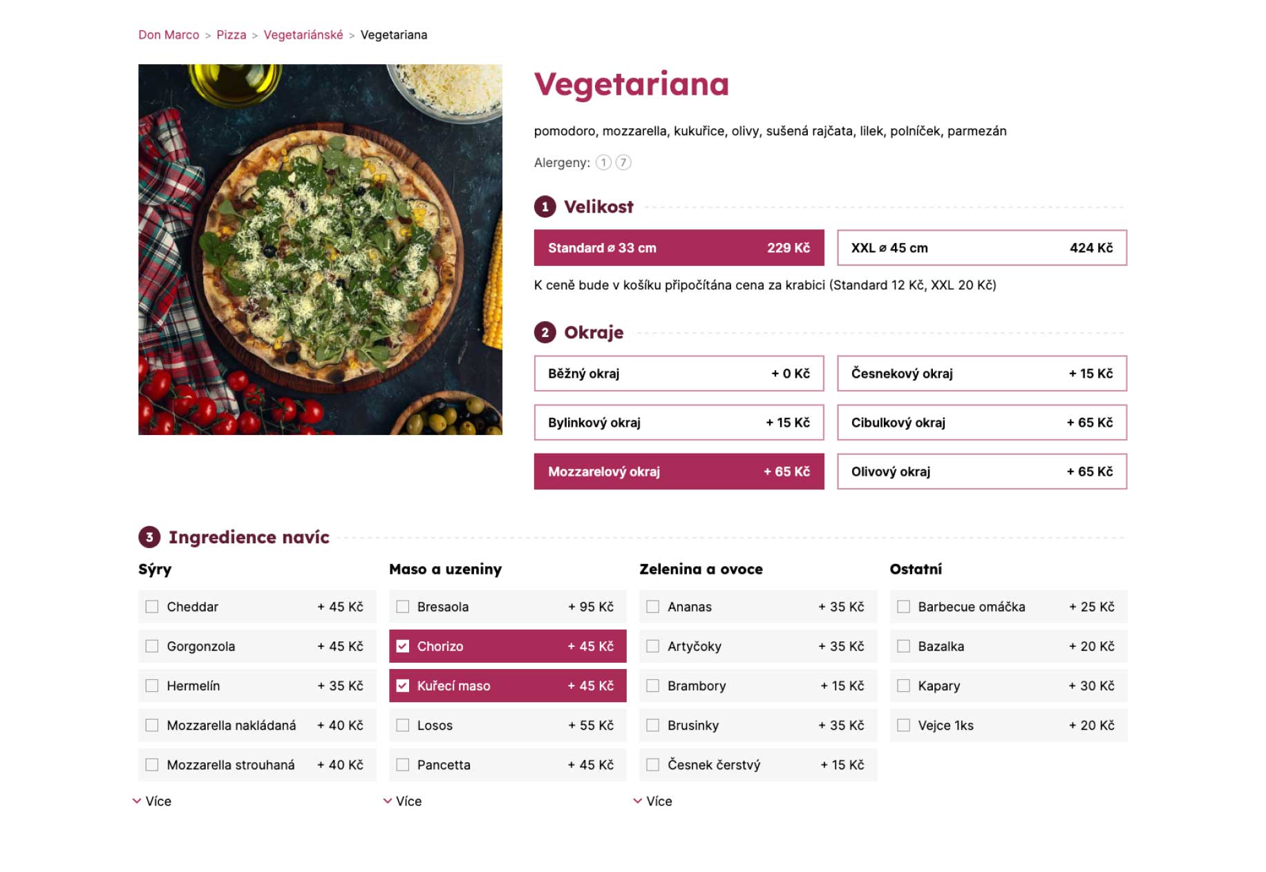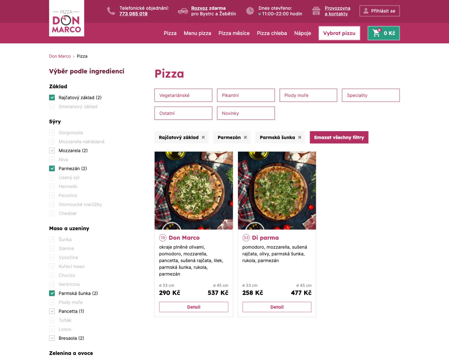 Pomocí filtrování ingrediencí rychle najdete pizzu.