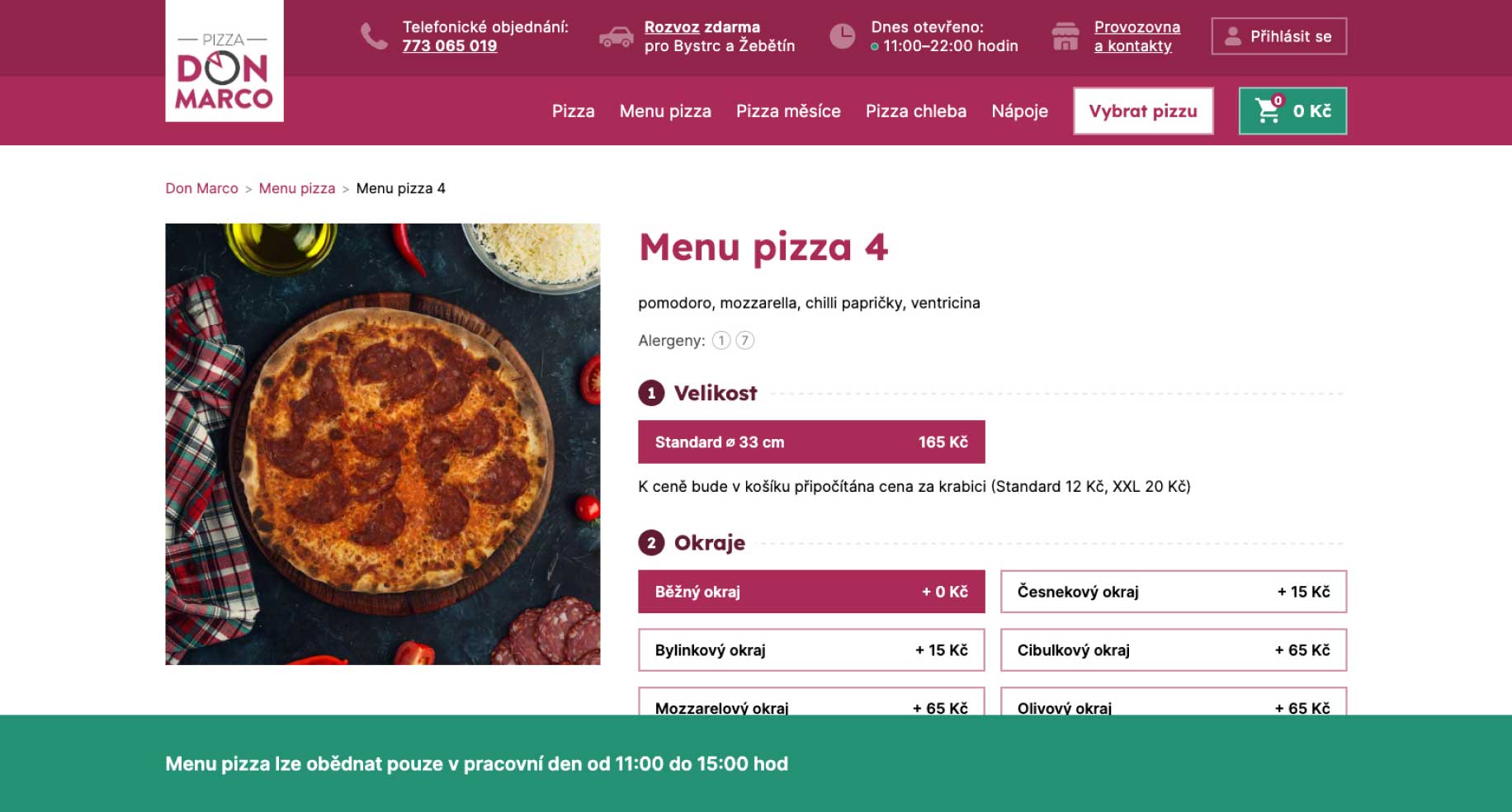Don Marco nabízí v čase obědů zvýhodněné pizzy.