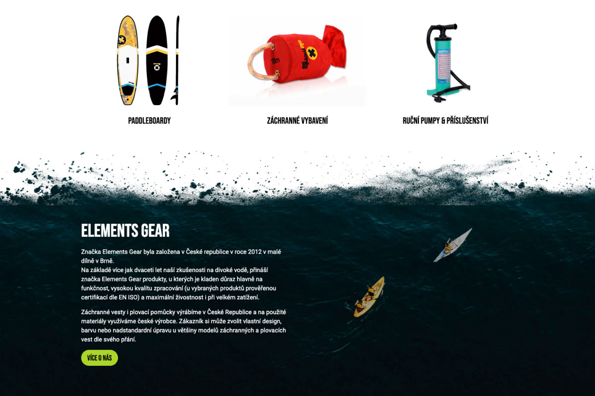 Hlavním úkolem webu je představit produkty značky Elements Gear.